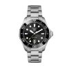 Built for diving, the new TAG Heuer Aquaracer is the ultimate everyday watch. Updated with a new case and bracelet, and powered by the automatic Calibre 5, it raises the bar for performance and looks the part with a black sunray brushed dial. The 43mm steel case has a slimmer profile for improved comfort and ergonomics. The unidirectional ceramic bezel with dive scale perfectly matches the dial and octagonal indexes. With its large hands set with Super-LumiNova, the dial is easy to read even in the darkest conditions. A timepiece built to perform.