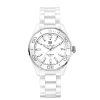 The white mother of pearl dial is set with 12 brilliant-cut 1.40mm VS diamonds (0.117 ct) for hour markers, creating a self-confident watch with a daring spirit.