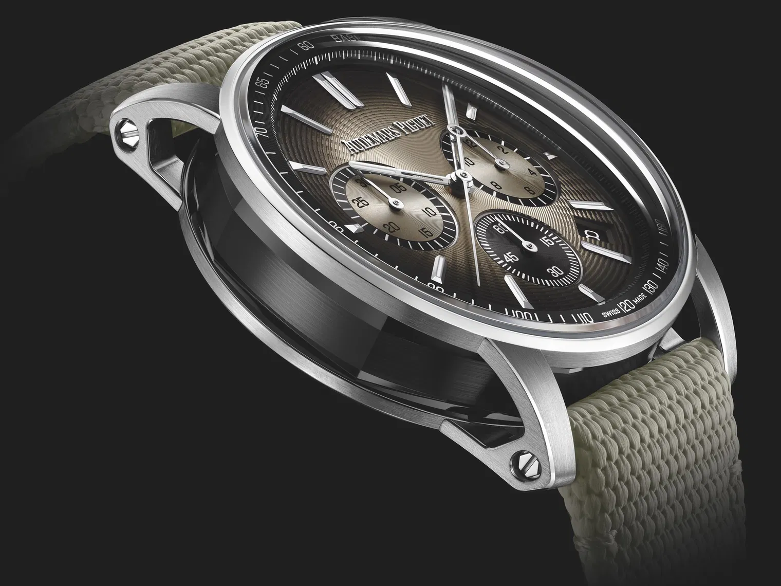 Audemars Piguet 26393QT.OO.A064KB.01 Code 11.59 Flyback Chronograph Smoked Beige 41mm Dial Beige Rubber-Coated Strap Watch