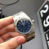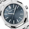 “Bleu nuit nuage 50” dial with “Grande Tapisserie” pattern, white gold applied hour-markers and Royal Oak hands with luminescent coating.