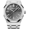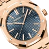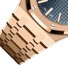“Bleu nuit nuage 50” dial with “Grande Tapisserie” pattern, pink gold applied hour-markers and Royal Oak hands with luminescent coating.