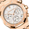 Silver-toned dial with “Grande Tapisserie” pattern, silver-toned counters, pink gold applied hour-markers and Royal Oak hands with luminescent coating.
