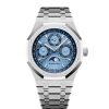 | Dial | Blue dial with “Grande Tapisserie” pattern, yellow gold applied hour-markers and Royal Oak hands with luminescent coating |