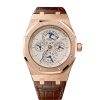 | Dial | Blue dial with “Grande Tapisserie” pattern, white gold applied hour-markers and Royal Oak hands with luminescent coating. |