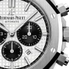 Silver-toned dial with “Grande Tapisserie” pattern, black counters and extern zone, white gold applied hour-markers and Royal Oak hands with luminescent coating.