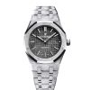 | Dial | Ruthenium-toned dial with “Grande Tapisserie” pattern, white gold applied hour-markers and Royal Oak hands with luminescent coating |