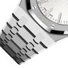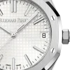 Silver-toned dial with “Grande Tapisserie” pattern, white gold applied hour-markers and Royal Oak hands with luminescent coating.