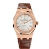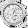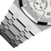 Silver-toned dial with “Grande Tapisserie” pattern, silver-toned counters, white gold applied hour-markers and Royal Oak hands with luminescent coating.