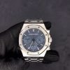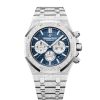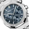“Bleu nuit nuage 50” dial with “Grande Tapisserie” pattern, “Bleu nuit nuage 50” counters, white gold applied hour-markers and Royal Oak hands with luminescent coating.