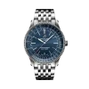 - 41mm case with a blue dial and a 7 link stainless steel bracelet