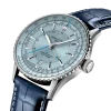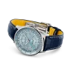 Experience the exquisite craftsmanship of the Breitling Navitimer Automatic GMT 41 watch. Boasting a striking blue dial with index hour markers and a date display, this timepiece is both functional and stylish. The GMT second time zone feature allows you to easily track time in different locations, while the slide rule adds a touch of sophistication. Housed in a durable stainless steel case with a rotating notched bezel, this watch is as reliable as it is elegant. The blue leather strap with a folding clasp ensures a comfortable and secure fit. With automatic movement and chronometer certification, the Breitling Navitimer is a true example of precision timekeeping.