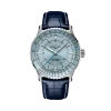 Experience the exquisite craftsmanship of the Breitling Navitimer Automatic GMT 41 watch. Boasting a striking blue dial with index hour markers and a date display, this timepiece is both functional and stylish. The GMT second time zone feature allows you to easily track time in different locations, while the slide rule adds a touch of sophistication. Housed in a durable stainless steel case with a rotating notched bezel, this watch is as reliable as it is elegant. The blue leather strap with a folding clasp ensures a comfortable and secure fit. With automatic movement and chronometer certification, the Breitling Navitimer is a true example of precision timekeeping.