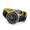 Experience timeless elegance and precision with the Breitling Navitimer Automatic GMT 41 watch. This sophisticated timepiece features a sleek black dial adorned with index hour markers and a date display for added functionality. Perfect for jet-setters, it comes equipped with a GMT second time zone function and a convenient slide rule for quick calculations on the go. The 41mm stainless steel case houses a reliable automatic movement certified as a chronometer for unparalleled accuracy. Completing the look is a black leather strap with a folding clasp for a secure and comfortable fit. Elevate your style with this exceptional timepiece from Breitling.