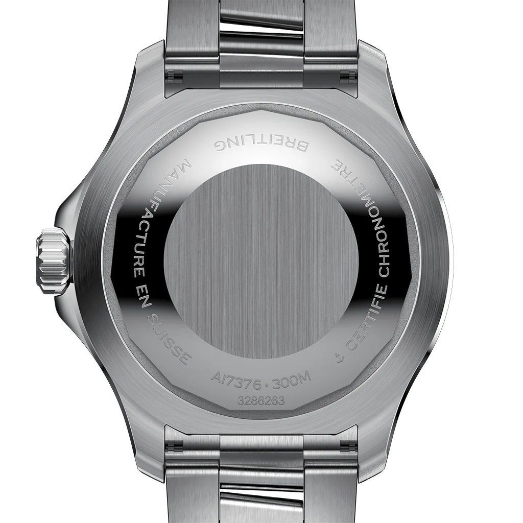 MOVEMENT Caliber: Breitling 17 Movement: Self-winding mechanical Power reserve: Approx. 38 hrs Vibration: 28,800 v.p.h Jewel: 26 jewels CASE Case material: Stainless steel Caseback: Screwed in Water resistance: 300 m (1,000 ft) Bezel: Unidirectional, ratcheted Crown: Screw-locked, two gaskets Crystal: Cambered sapphire, glareproofed both sides DIMENSIONS Product Weight (Approx.): 184.0 g. Watch-head Weight (Approx.): 89.6 […]