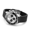 The Breitling Superocean Heritage II B01 Chronograph 44 AB0162121G1S1 men’s watch is expertly crafted with a polished stainless steel case and a black unidirectional rotating bezel. It features an Aero Classic black rubber strap and a silver dial with luminescent minute and hour hands. The index hour markers and bezel at 12 o’clock also have luminescent dots. The date can be seen through a dial aperture between 4 and 5 o’clock. This watch is powered by the Breitling Caliber 01 self-winding automatic chronometer certified movement, with a 70-hour power reserve and 47 jewels.