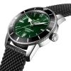 Experience the timeless elegance of the Breitling Superocean Heritage B20 Automatic 46 watch. Featuring a striking green dial with index hour markers and a useful date function, this timepiece is both stylish and functional. The 46mm stainless steel case is complemented by a sleek black ceramic bezel, adding a modern touch to its classic design. The black aero classic rubber strap with a deployment buckle ensures a comfortable fit for everyday wear. Powered by an automatic movement and certified as a chronometer, this watch is a true example of luxury and quality craftsmanship from Breitling.
