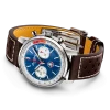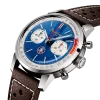 Silver-tone stainless steel case with a brown leather strap. Fixed silver-tone stainless steel bezel. Blue dial with silver-tone hands and index hour markers. Minute markers around the outer rim. Dial Type: Analog. Luminescent hands and markers. Chronograph – three sub-dials displaying: 60 second, 30 minute and 12 hour. Breitling Calibre 01 Automatic movement, containing 47 Jewels, composed of 346 parts, bitting at 28800 vph, and has a power reserve of approximately 70 hours. Scratch resistant sapphire crystal. Pull / push crown. Transparent see through case back. Round case shape, case size: 41 mm. Fold over clasp with a safety release. Water resistant at 100 meters / 330 feet. Functions: chronograph, column wheel, date, hour, minute, second, chronometer. Additional Info: original box, international warranty card, manual (complete accessories). Top Time Shelby Cobra Series. Luxury watch style. Watch label: Swiss Made. Breitling Top Time Shelby Cobra Chronograph Automatic Chronometer