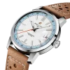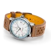 Silver-tone stainless steel case with a beige calfskin leather strap. Fixed silver-tone stainless steel bezel. White/light blue dial with silver-tone hands and index hour markers. Minute scale around the inner rim. Dial Type: Analog. Luminescent hands and markers. Date display at the 3 o’clock position. Breitling Calibre B31 hand wind movement with a 78-hour power reserve. Scratch resistant sapphire crystal. Transparent see through case back. Round case shape, case size: 38 mm, case thickness: 20.05 mm. Band width: 18 mm. Tang clasp. Water resistant at 100 meters / 330 feet. Functions: date, hour, minute, second, chronometer. Top Time B31 Series. Watch label: Swiss Made. Breitling Top Time B31 Hand Wind Chronometer Men’s Watch AB3113281A1X1.