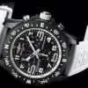 The 44mm Breitling case of this Breitling Professional Endurance Pro watch is renowned for its lightweight properties, measuring in at 3.3. times lighter than titanium and 5.8 times lighter than steel. Its bi-directional bezel is engineered from the same, decorated with a compass scale and Superluminova accents. Housed within is the B82 SuperQuartz movement which has been COSC certified and provides exceptional precision of the hours, minutes and small seconds and chronograph function with 12 hour and 30 minute counters. Presenting all these useful functions is a smooth black dial decorated in white accents and Superluminova numerals and hands for optimal legibility. To complete the look of the Breitling Professional Endurance Pro White watch, a sporty white rubber strap is added alongside a Breitlight engineered double tang clasp.