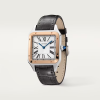 This large-scale Santos-Dumont model is rendered in a 46.6 mm size for a powerful appeal, crafted from two-tone stainless steel with a black alligator strap.