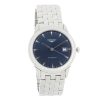 stainless steel Strap. stainless steel case. stainless steel bezel. dial with Blue hands and Arabic Numerals hour markers. . quartz movement. mineral crystal. 40mmx 40mmx mm case. 20mm band width. 30 meters water resistant. L2.768.4.13.2