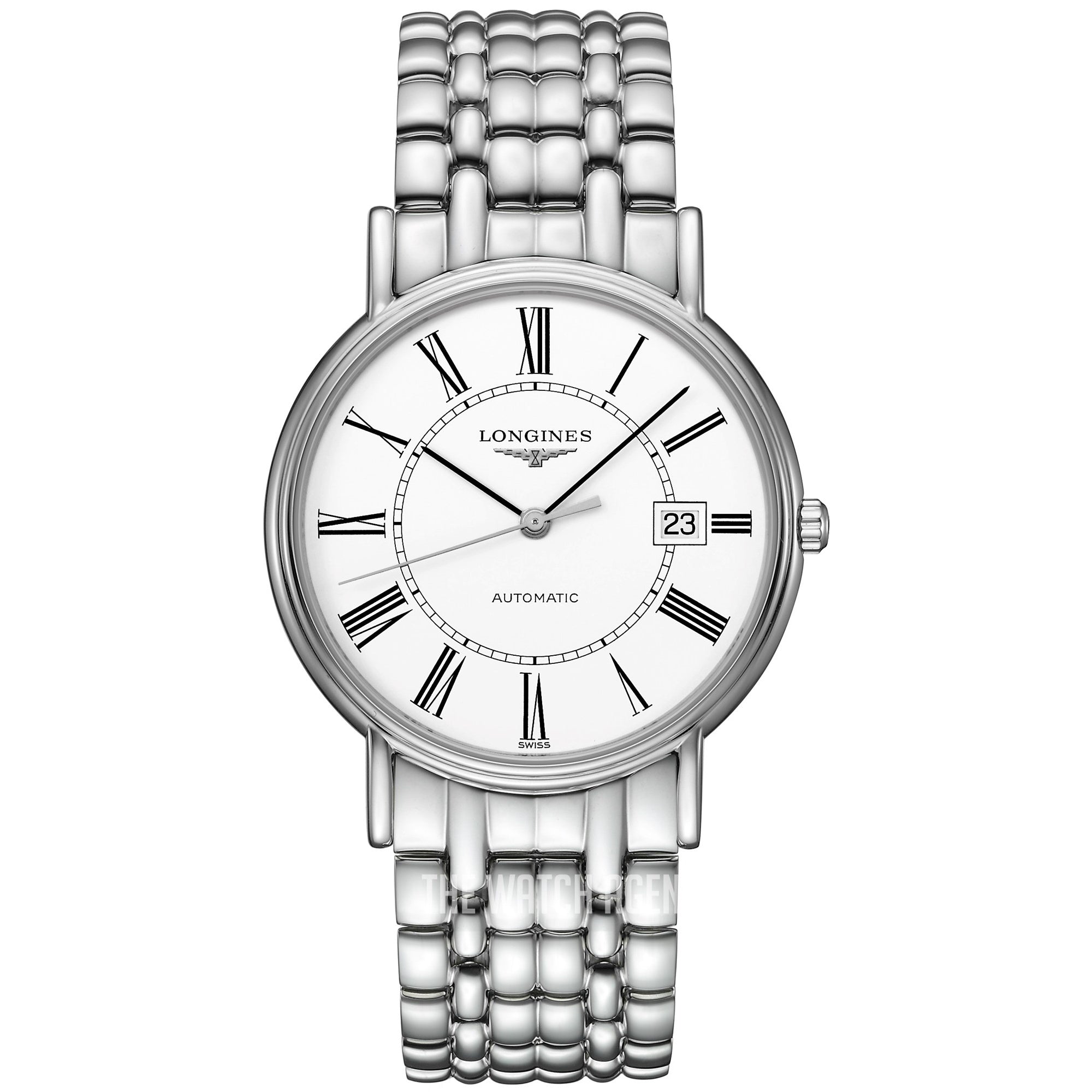 Bracelet. case. bezel. dial with Silver hands and Roman Numeral hour markers. . movement. crystal. 38.5mmx 38.5mmx 9mm case. 20mm band width. water resistant. L4.921.4.11.6
