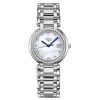 stainless steel Bracelet. stainless steel case. silver-tone stainless steel bezel. blue dial with Rose Gold-Tone hands and Index hour markers. . quartz movement. sapphire crystal. 34mmx 34mmx 8.9mm case. 17mm band width. 50 meter water resistant. L2.386.4.92.6