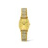 leather Strap. stainless steel case. gold-tone stainless steel bezel. white dial with Black hands and Roman Numeral hour markers. . quartz movement. sapphire crystal. 14mmx 14mmx 5mm case. 15mm band width. 30 meter water resistant. L4.209.2.11.2