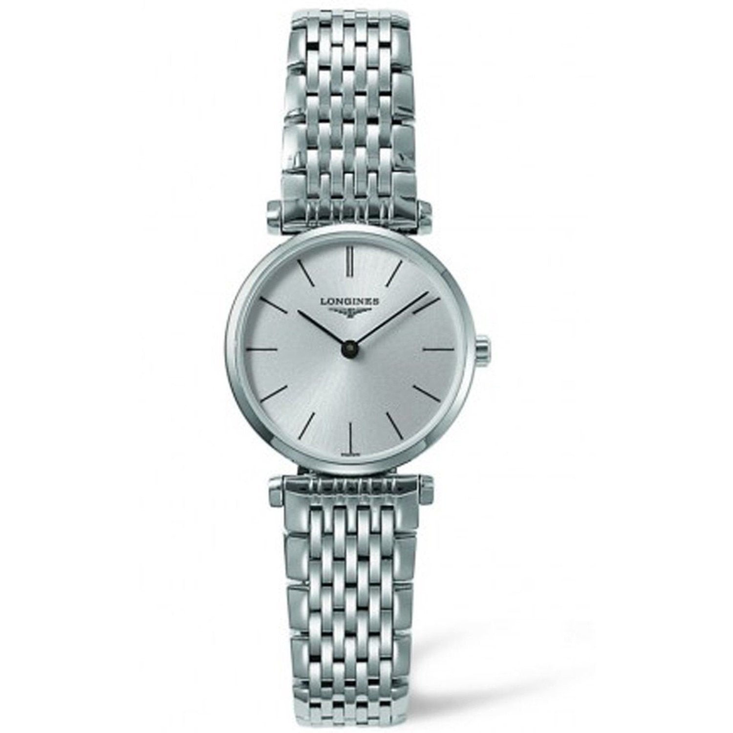 stainless steel Bracelet. stainless steel case. stainless steel bezel. dial with Black hands and Index hour markers. . quartz movement. mineral crystal. 24mmx 24mmx 4mm case. 13mm band width. 30 meters water resistant. L4.209.4.72.6