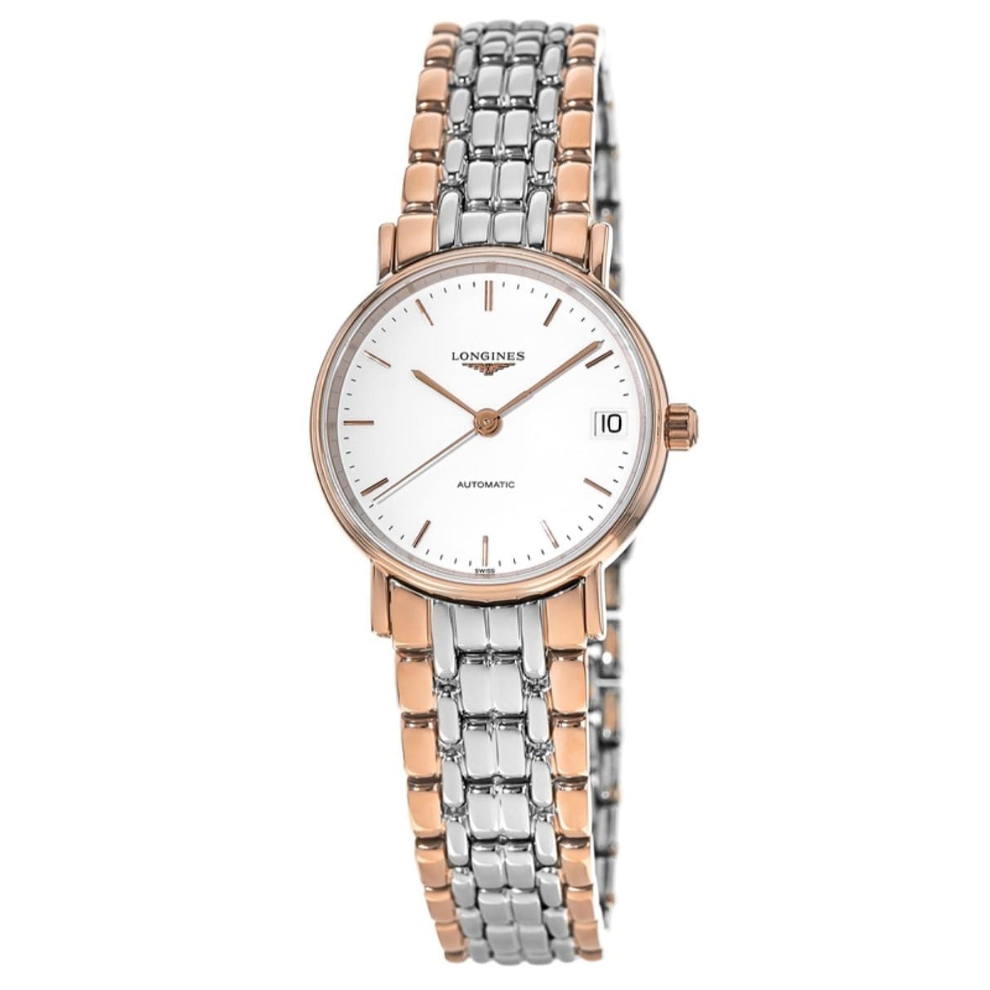 stainless steel Bracelet. stainless steel case. rose gold-tone stainless steel bezel. white dial with Rose Gold-Tone hands and Index hour markers. . automatic movement. sapphire crystal. 30mmx 30mmx 0mm case. 0mm band width. 30 meter water resistant. L4.322.1.12.7
