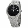stainless steel Bracelet. stainless steel case. stainless steel bezel. dial with Blue hands and Roman Numerals hour markers. . quartz movement. mineral crystal. 26.85mmx 22.4mmx mm case. 17mm band width. 30 meters water resistant. L5.502.5.70.7
