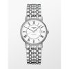 Strap. case. bezel. dial with Blue hands and Roman Numeral hour markers. . movement. crystal. 26mmx 26mmx 0mm case. 0mm band width. water resistant. L6.136.4.71.2