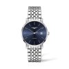 stainless steel Bracelet. stainless steel case. stainless steel bezel. white dial with Silver hands and Index and Arabic Numerals at 6 and 12 o’clock position hour markers. . quartz movement. sapphire crystal. 26.5mmx 26.5mmx mm case. 14mm band width. 30 meters water resistant. L8.110.4.16.6