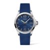 stainless steel Bracelet. stainless steel case. silver-tone stainless steel bezel. silver dial with Blue hands and Roman Numerals hour markers. . quartz movement. sapphire crystal. 34mmx 34mmx 10.2mm case. 0mm band width. 30 meter water resistant. L8.116.4.71.6