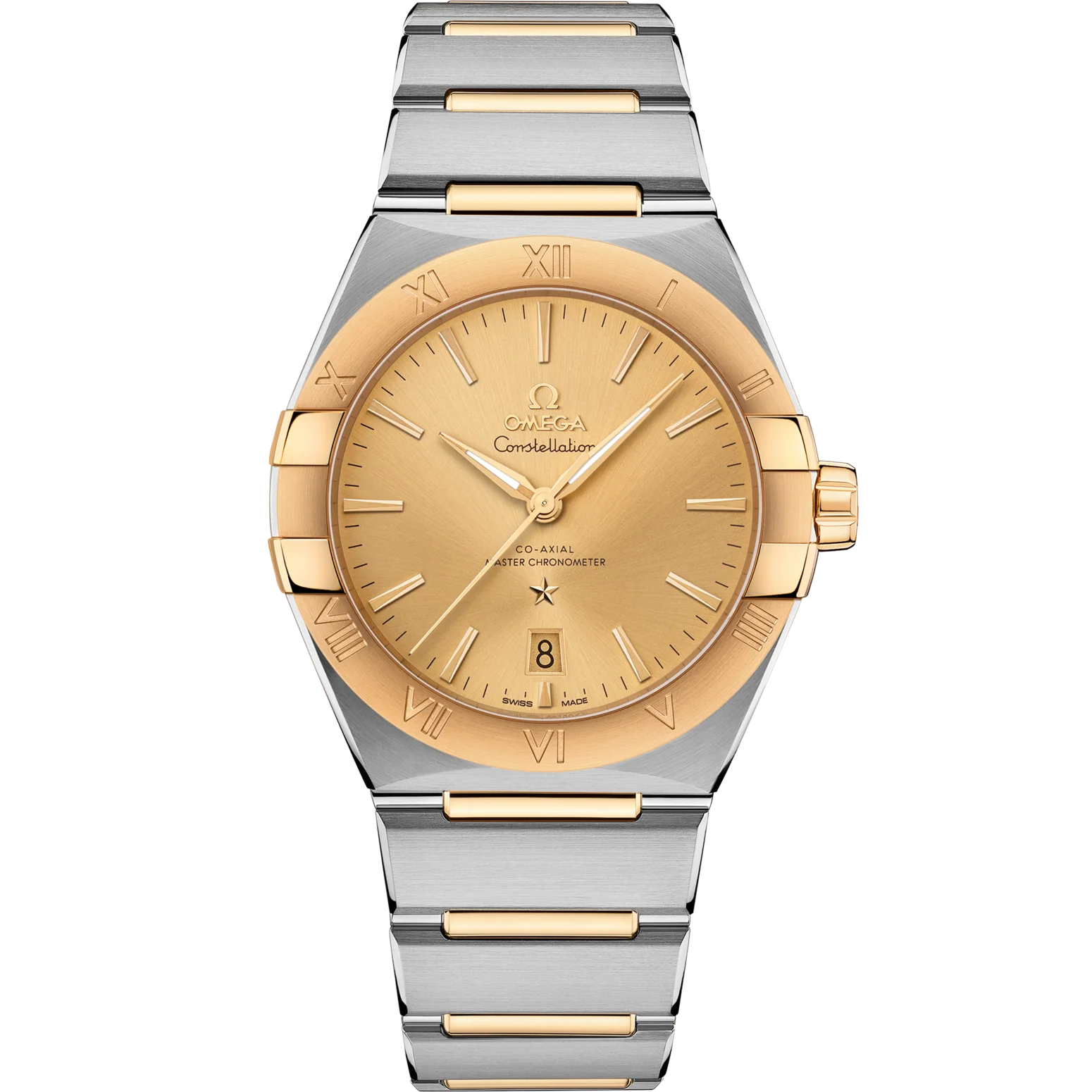 Unworn Omega Constellation CO‑AXIAL MASTER CHRONOMETER 131.20.39.20.08.001. 39 mm, Yellow dial, Steel case, Yellow gold bezel, 8800 calibre, Automatic Movement, 55 hours power reserve, Steel ‑ yellow gold bracelet Butterfly clasp. Water resistant to 50 m.