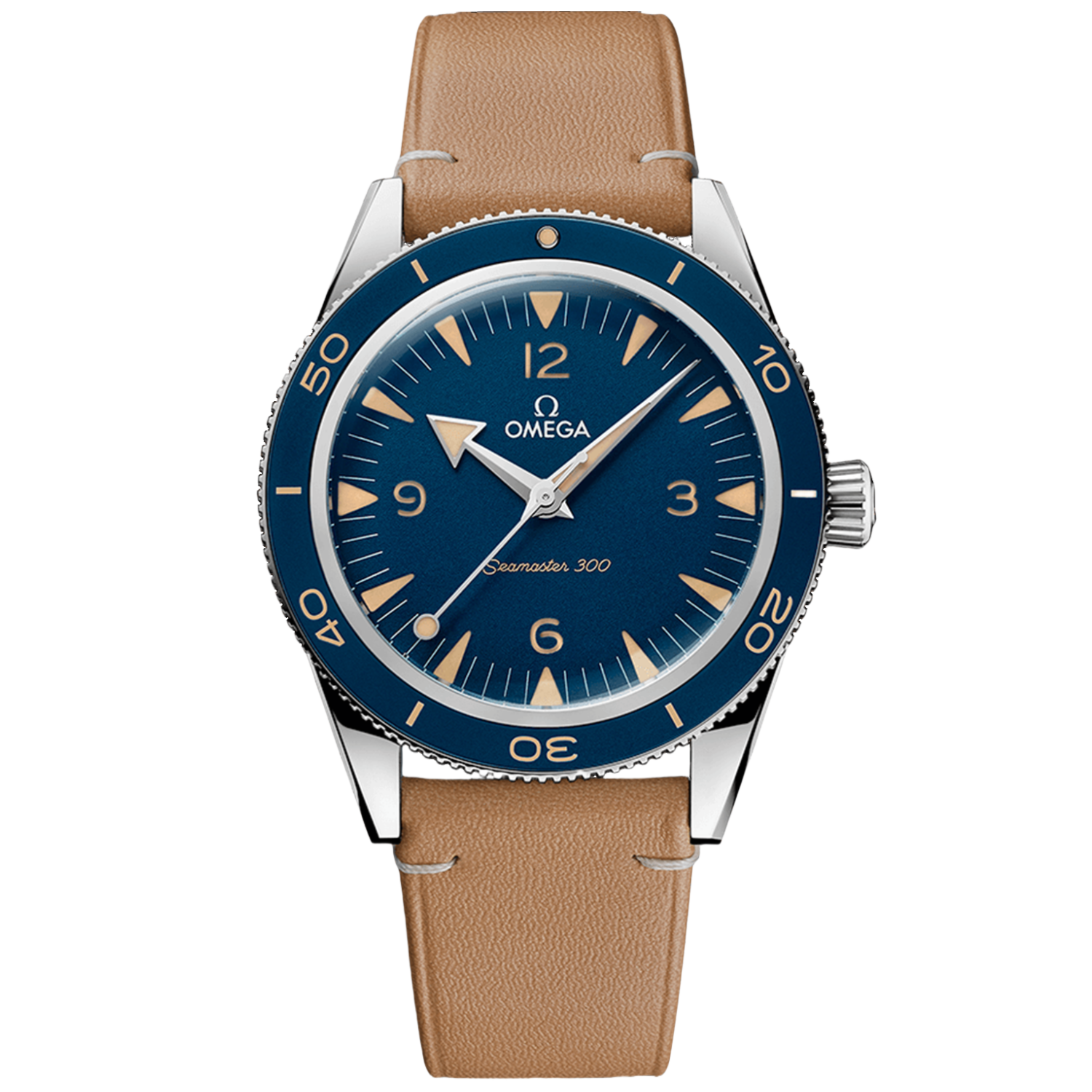 Unworn Omega Seamaster 300 CO‑AXIAL MASTER CHRONOMETER 234.32.41.21.03.001. 41 mm, Blue dial, Steel case, Aluminium bezel, 8912 calibre, Self Winding Movement, 60 hours power reserve, Leather strap with Pin buckle clasp. Water resistant to 300 m.