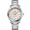 Calibre OMEGA 4061: Quartz movement with “Long Life” feature to maximize the autonomy of the battery. Exclusive red OMEGA logo with rhodium plated parts and circular graining.