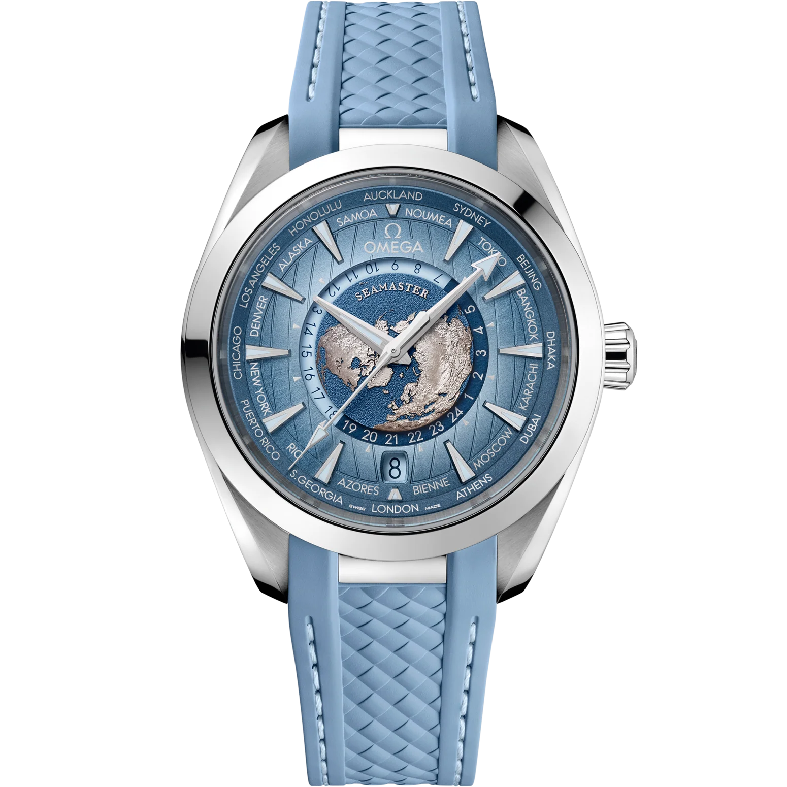 Analog, GMT, Chronometer, World Time, Rubber, Stainless Steel, Time Zone