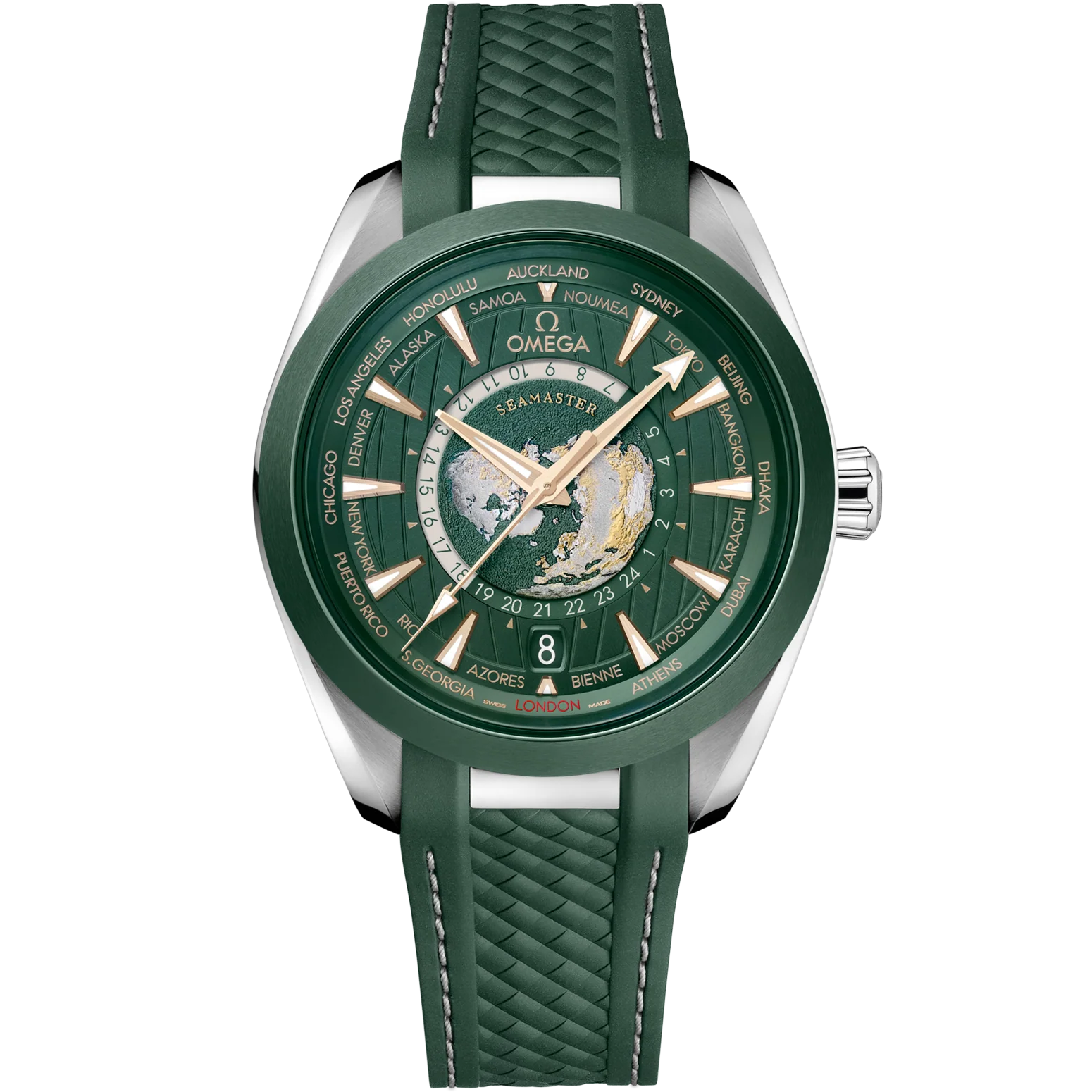 The OMEGA Seamaster Aqua Terra Worldtimer is the perfect companion for discerning global travelers who appreciate artistry and reliability in every detail.
