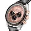 The sun brushed, PVD treated Sedna Gold dial showcases applied logos, indices, and 18K Sedna Gold hands. Subdials include a small seconds, 30 minute recorder, and a 12 hour recorder, all framed by a sleek black alligator strap. At its heart is the manual winding OMEGA Co-Axial Master Chronometer Caliber 3861, certified by METAS and highly resistant to magnetic fields up to 15,000 gauss.