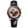 The sun brushed, PVD treated Sedna Gold dial showcases applied logos, indices, and 18K Sedna Gold hands. Subdials include a small seconds, 30 minute recorder, and a 12 hour recorder, all framed by a sleek black alligator strap. At its heart is the manual winding OMEGA Co-Axial Master Chronometer Caliber 3861, certified by METAS and highly resistant to magnetic fields up to 15,000 gauss.