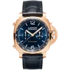 Dérgradé grey grenée with luminous arabic numerals and hour markers. Hollowed chronograph minutes counter at 3 o’clock and small seconds counter at 9 o’clock. Central chronograph seconds hands. Tachymeter scale in the external “rehaut”