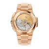 Patek Philippe Nautilus 5990-1R-001. 40.5 mm. The watch has Sunburst blue Dial. The Case is Rose gold w/ Caliber # CH 28?520 C FUS w/ 34 Jewels , 55 hours power reserve. The Bracelet is Rose gold with fold-over clasp. The Water-resistant is up to 120 m. The Watch comes complete with Patek Philippe Papers & Original Patek Philippe Box. Covered with Patek Philippe 2-Year Warranty.