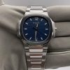 The centerpiece of this reference is the rich blue opaline dial, enhanced by the horizontal wave pattern exclusive to the ladies’ Nautilus collection. The color transitions beautifully under different lighting, adding depth and character. Applied white gold Arabic numerals and luminescent baton-style hands ensure excellent readability, while a date window at 6 o’clock provides daily utility without disrupting the dial’s symmetry.