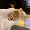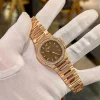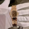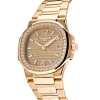 Patek Philippe Nautilus Women’s Watch 7010/1r-012, 32 mm 18K rose gold case set with 46 diamonds (~0.73 ct.), golden dial with luminescent applied gold hour markers, caliber E23-250 S C quartz movement with date and sweep seconds, 18K rose gold bracelet, Nautilus fold-over buckle. Water resistant to 60 m