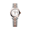Rolex Perpetual Lady-Datejust Watch of Stainless Steel and 18k Everose Gold. White dial with Roman Numerals hour markers. The domed 18k Everose Gold bezel. The Stainless Steel and 18k Everose Gold Oyster bracelet, 279161.