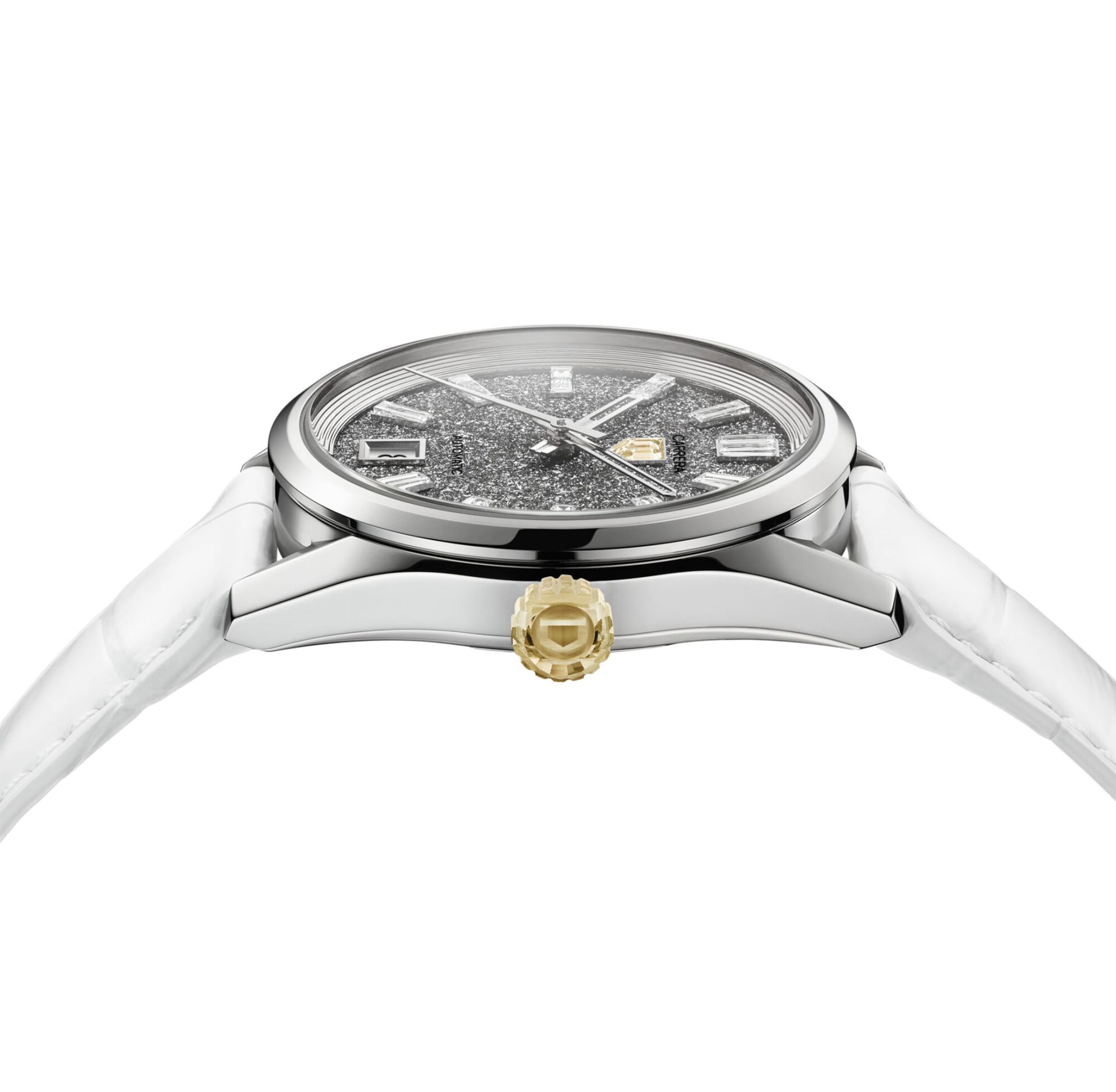- This model features a dial made from a single lab-grown polycrystalline diamond, baguette-cut diamond indices and an 18ct white gold case.