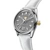 On top of that, the dial features 12 white gold indexes set with white baguette-cut lab-grown diamonds of 0.5 carats each, while a single yellow lab-grown diamond takes the place of the TAG Heuer shield logo at 12 o’clock. Furthermore, the Carrera Date Plasma’s crown is also made from a single yellow lab-grown diamond, which itself features a shield motif. Lab-grown diamonds are typically completely flawless, but to create these yellow diamonds, TAG has to deliberately introduce imperfections into the diamonds as they grow. The Plasma technology ensures that the entire diamond is imbued with colour uniformly.