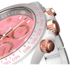 In order to create a unified and comfortable visual experience, the hour markers, hour and minute hands, sub-dials, side crowns and chronograph buttons of the watch dial are all made of rose gold to echo them.
