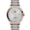 This men’s 41mm Tudor 1926 watch is part of a line of stylish timepiece that pays tribute to the Swiss company’s history is exquisite watchmaking. The design of the watch is timeless and elegant. Its stainless steel case is executed with a polished finish, with integrated lugs that lead to a 7-row stainless steel bracelet. Satin-brushed techniques are applied to the links on the outside of the bracelet and the central links have been meticulously polished to Tudor’s high standards. The men’s Tudor watch presents the time on a black dial with embossed decoration to its surface. Rhodium-plated hands taper to a fine point, accompanied by an hour track presented in a mix of Arabic numerals and dashes. The gentleman can reference the date underneath a sapphire crystal glass lens – an effortless way to keep on track of a busy working week. To power the hands around this Tudor 1926 watch with such precision, the self-winding Calibre 2824, equipped with a 38 hour power reserve, sits inside a 100-meter water resistant case. Remaining as close as possible to the original Tudor models created in 1926, this elegant dress watch melds modern cutting-edge technology with traditional watchmaking ethics.